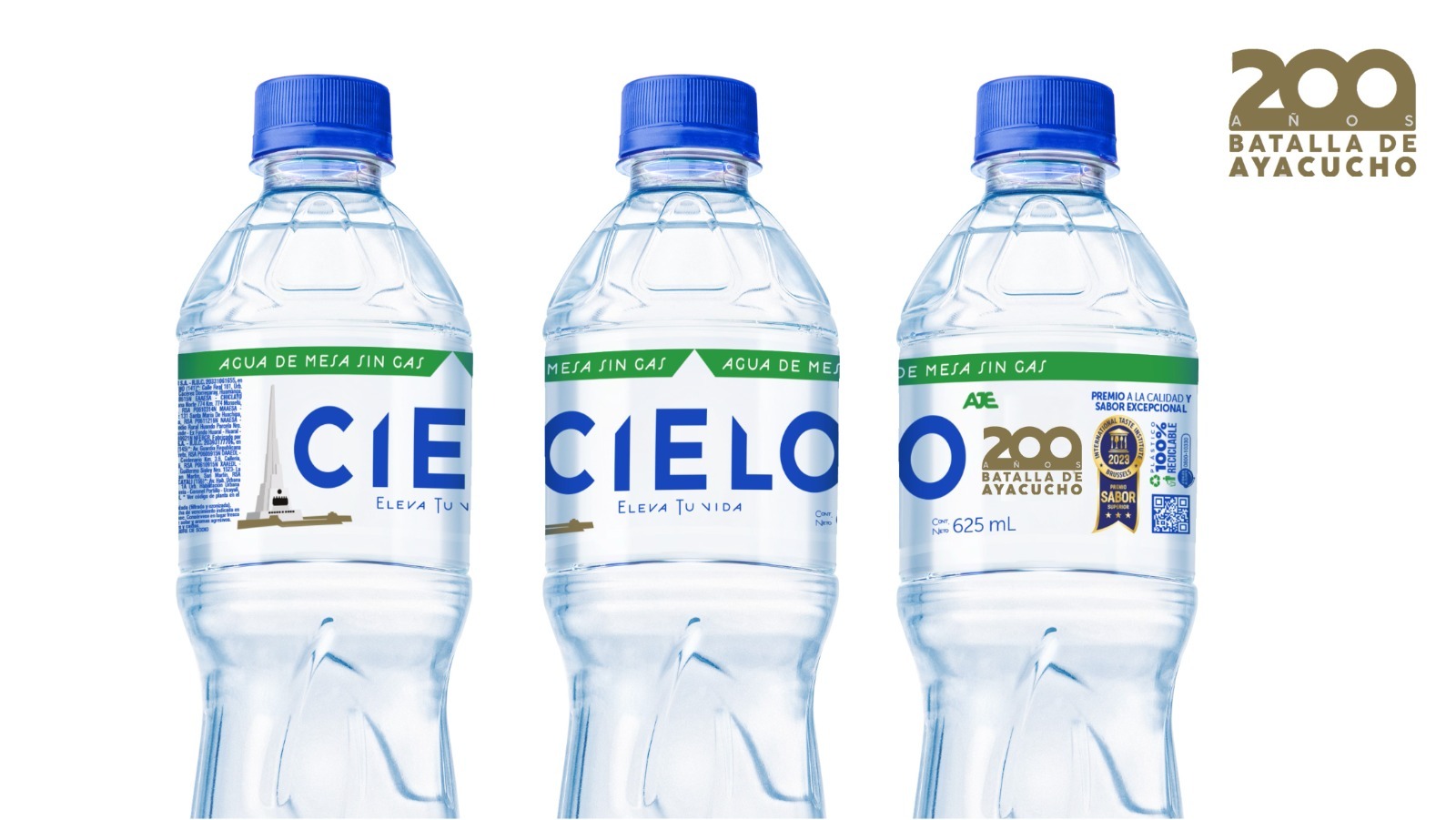 - La multinacional de bebidas de origen peruano, Grupo AJE, lanzó recientemente al mercado peruano una edición especial de agua Cielo para conmemorar los 200 años de la Batalla de Ayacucho.