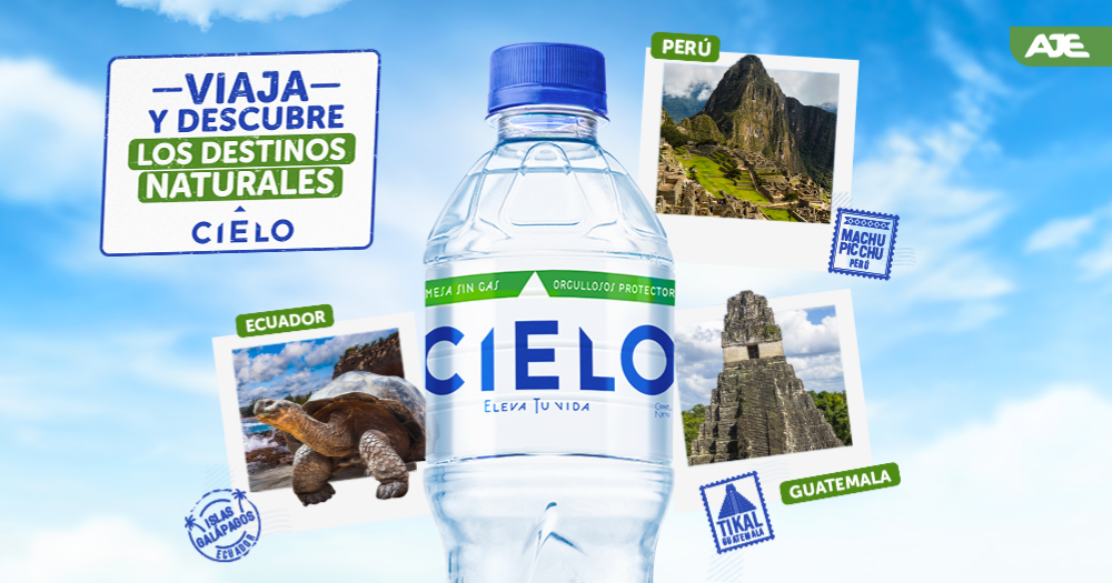 Con el objetivo de premiar la preferencia del público y dar a conocer los proyectos de sostenibilidad que desarrolla en los países donde opera, Grupo AJE a través de su marca Cielo, ha lanzado la promoción “Descubre los Destinos Naturales Cielo” que premiará a doce afortunados con un paquete doble para visitar uno de los destinos que la marca protege: Islas Galápagos (Ecuador), el Parque Nacional de Tikal (Guatemala) o Machu Picchu (Perú).